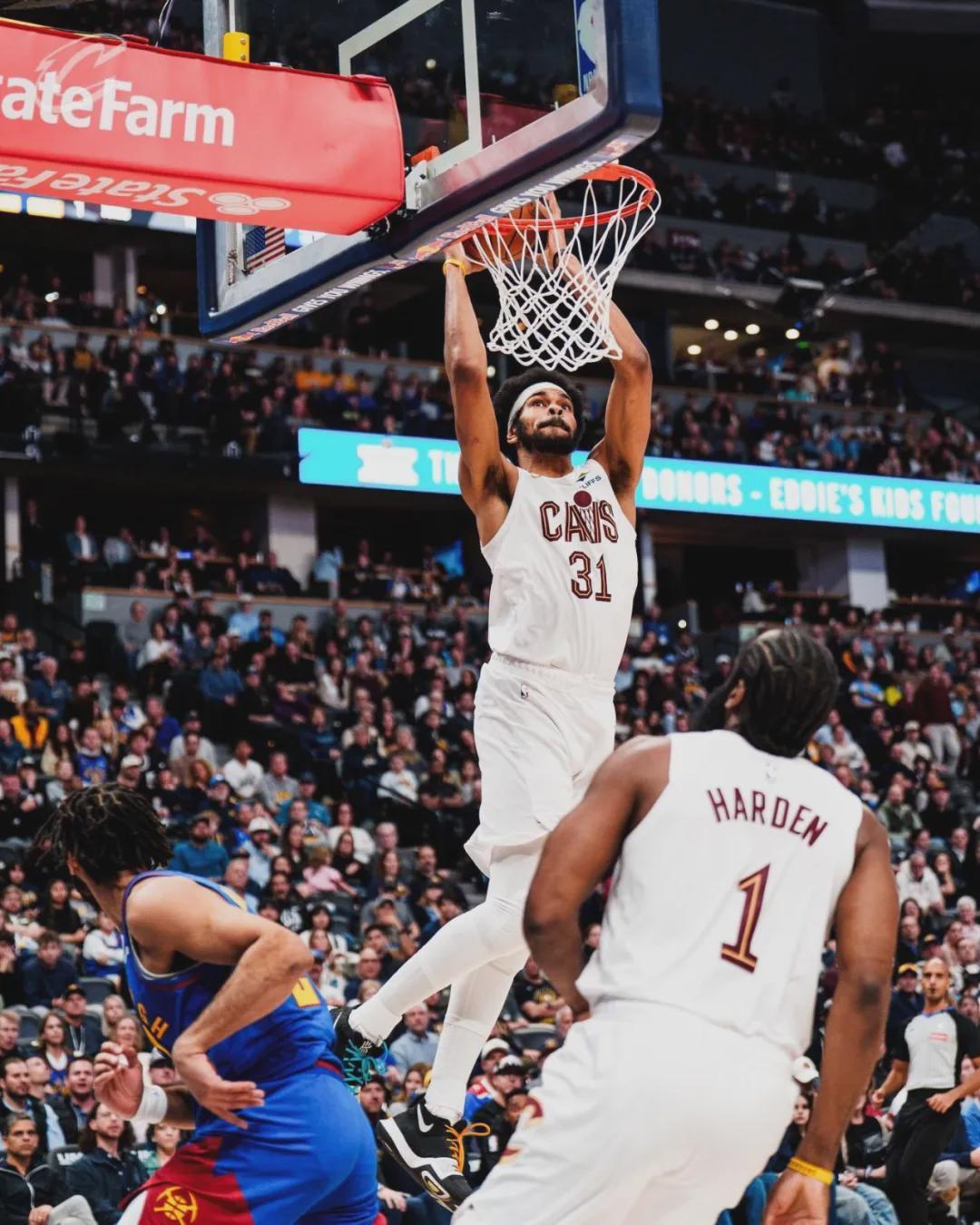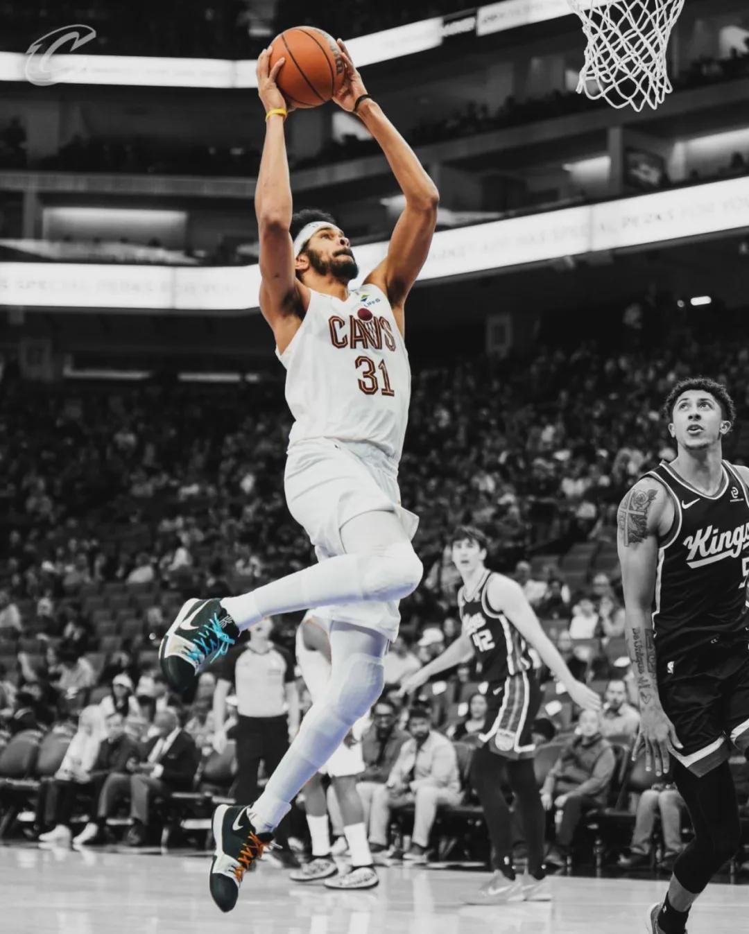 骑士三人砍下20+10:米切尔23投11中,三分10中3,罚球8中7,砍下32分10助攻2抢断2盖帽,正负值+3。米切尔赛后说道:“我们的新阵容还没有真正合练过,就是凭感觉打球。”贾莱特-阿伦16投10中,得到22分13篮板1助攻。