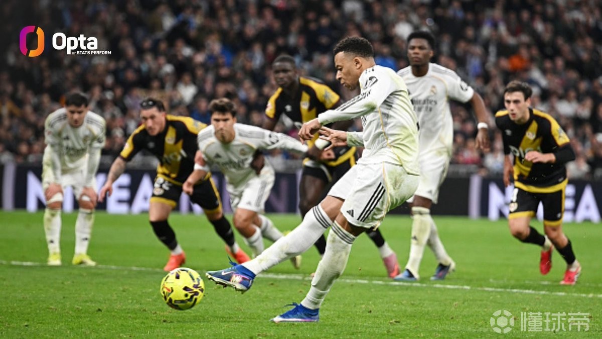 西甲第22轮,皇家马德里主场2-1击败巴列卡诺,姆巴佩在比赛第100分钟罚入制胜点球,至此,姆巴佩本赛季各项赛事已打入12粒点球,上一位单赛季点球进球数比他更多的西甲球员是C罗。