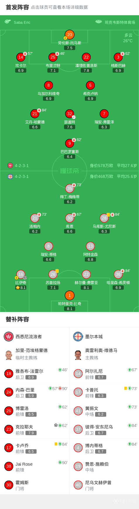 第77分钟,瑟盖特开出任意球,克拉耶夫头球折射破门,西悉尼流浪者1-1