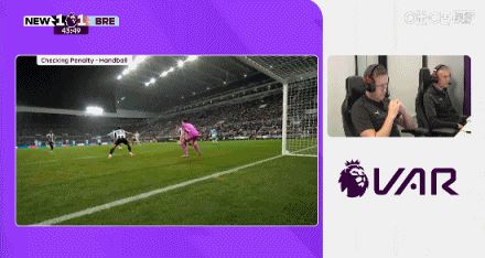 第45分钟,墨菲禁区手球,蒂亚戈主罚打进,纽卡1-2布伦特福德