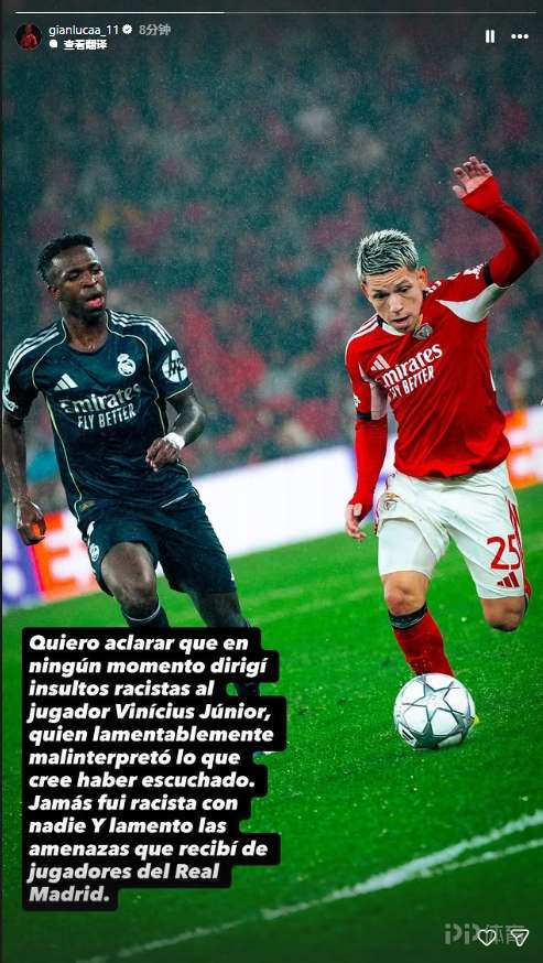 此前普雷斯蒂亚尼回应歧视,普雷斯蒂亚尼发文:我想澄清,我从未对球员维尼修斯·儒尼奥尔进行过任何种族歧视的侮辱,他很不幸地误解了他听到的内容。我从未对任何人有过种族歧视行为,我对收到的来自皇家马德里球员的威胁感到遗憾。
