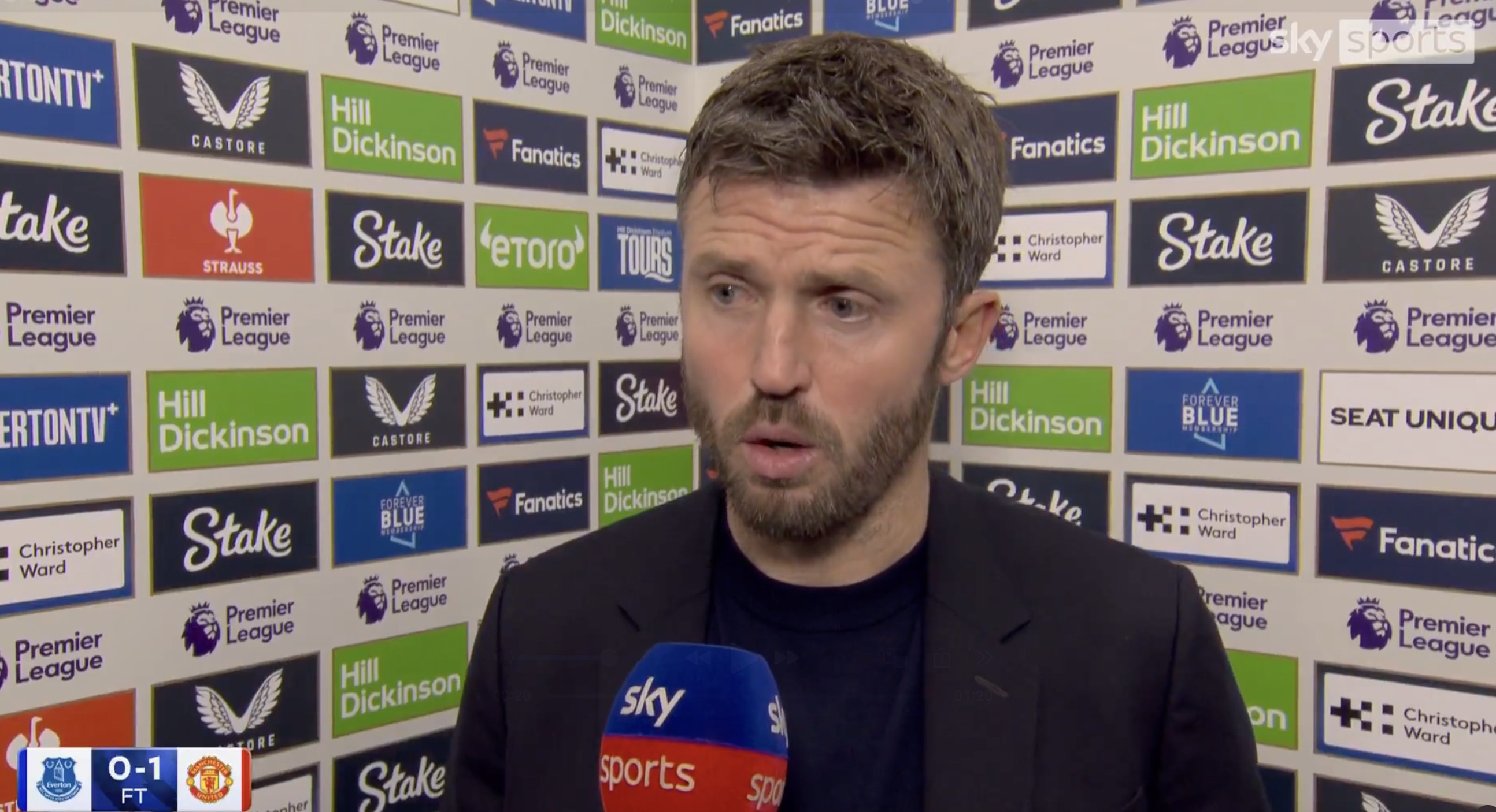英超第27轮,曼联客场1-0击败埃弗顿,赛后,曼联主帅卡里克接受了天空体育的采访。