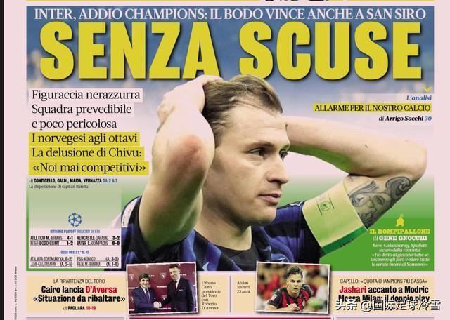 国米欧冠出局后,意媒展开了对蓝黑军汹涌、犀利的声讨。