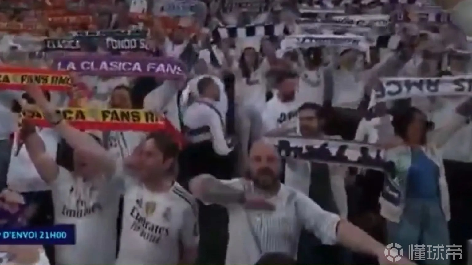 在本场比赛开场期间,伯纳乌球场看台上的球迷们打出了“反对种族主义”和“尊重”两条横幅来声援首回合比赛中疑似遭遇种族歧视的维尼修斯,电视转播镜头在赛前也捕捉到了这一幕。