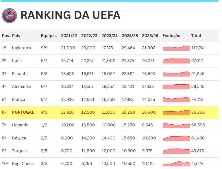 • 若本菲卡战胜皇马,葡萄牙将确保27-28赛季拥有三个欧冠名额
