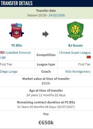 • 德转:马里中场孔特加盟北京国安的转会费为65万欧