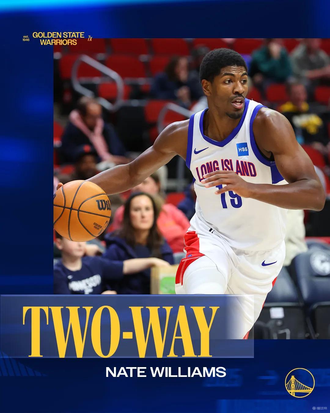• 官方:勇士双向合同签约G联赛场均17.9分6.1板的内特-威廉姆斯